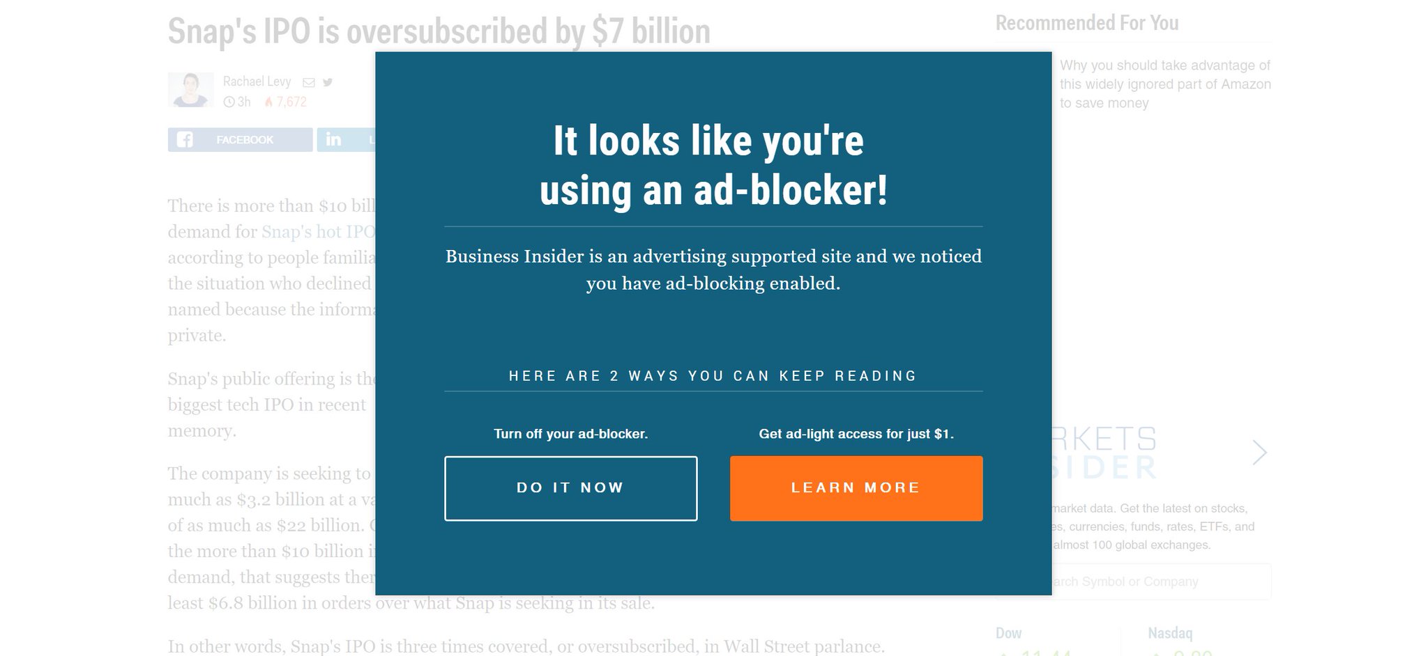 Most website designers never really learned that pop-ups, pop-unders, autoplaying videos with sound, animated Flash ads, affiliate redirects, advertorial sections, and the like are never going to be accepted. Rather than redesign their sites to use unobtrusive locally hosted linked images the way Techpowerup does when encountering an adblock user, we're increasingly seeing this: